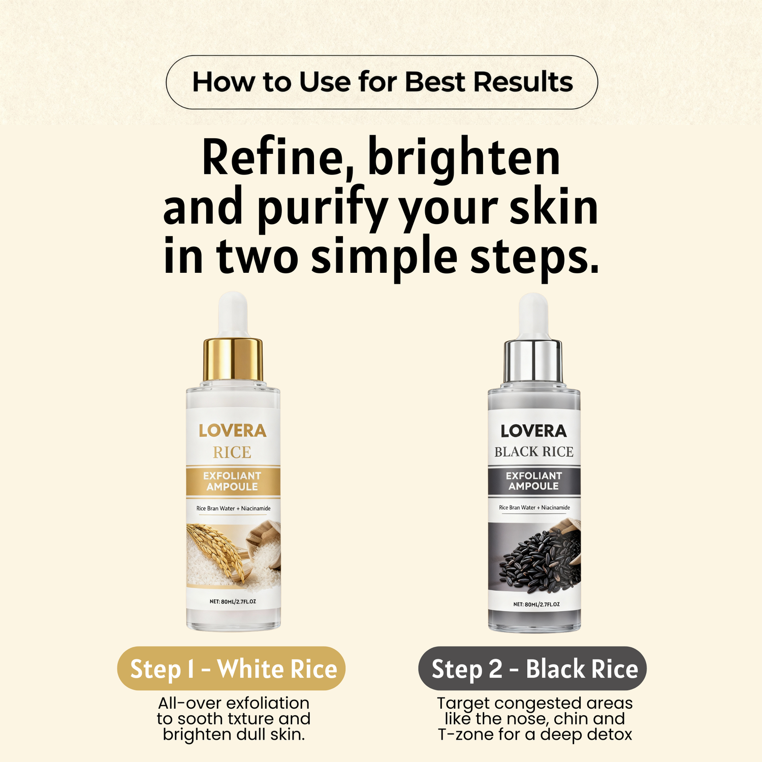 Follow with Black Rice Peel on problem areas (nose, chin, T-zone) for deep detoxifying action.